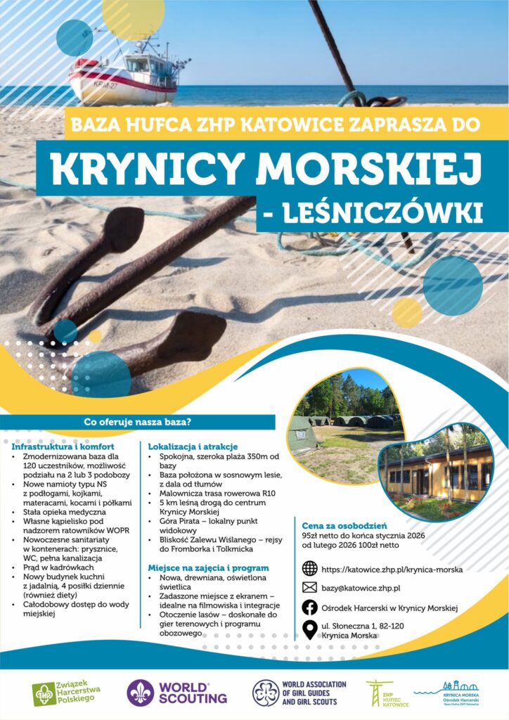 W celu bliższego zapoznania się z warunkami panującymi na bazie (przed modernizacją) polecamy film I SH im. Obrońców Katowic z Hufca ZHP Katowice 🙂 Baza do której się wraca – Krynica Morska – Hufiec ZHP Katowice