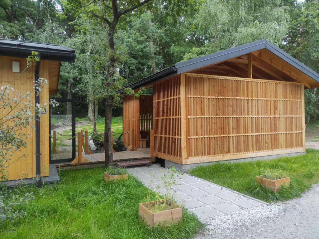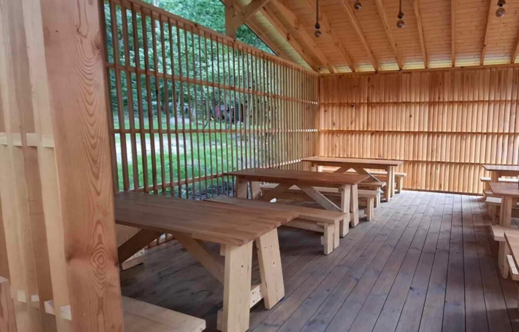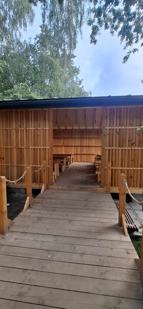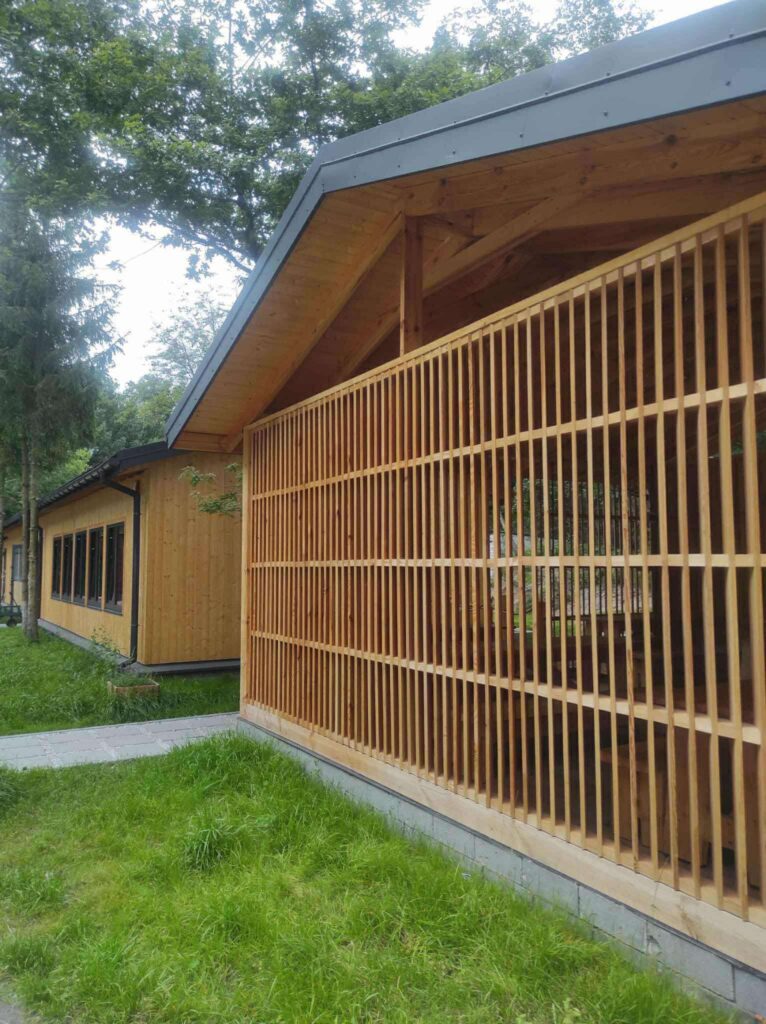 - Nowa, drewniana, oświetlona świetlica