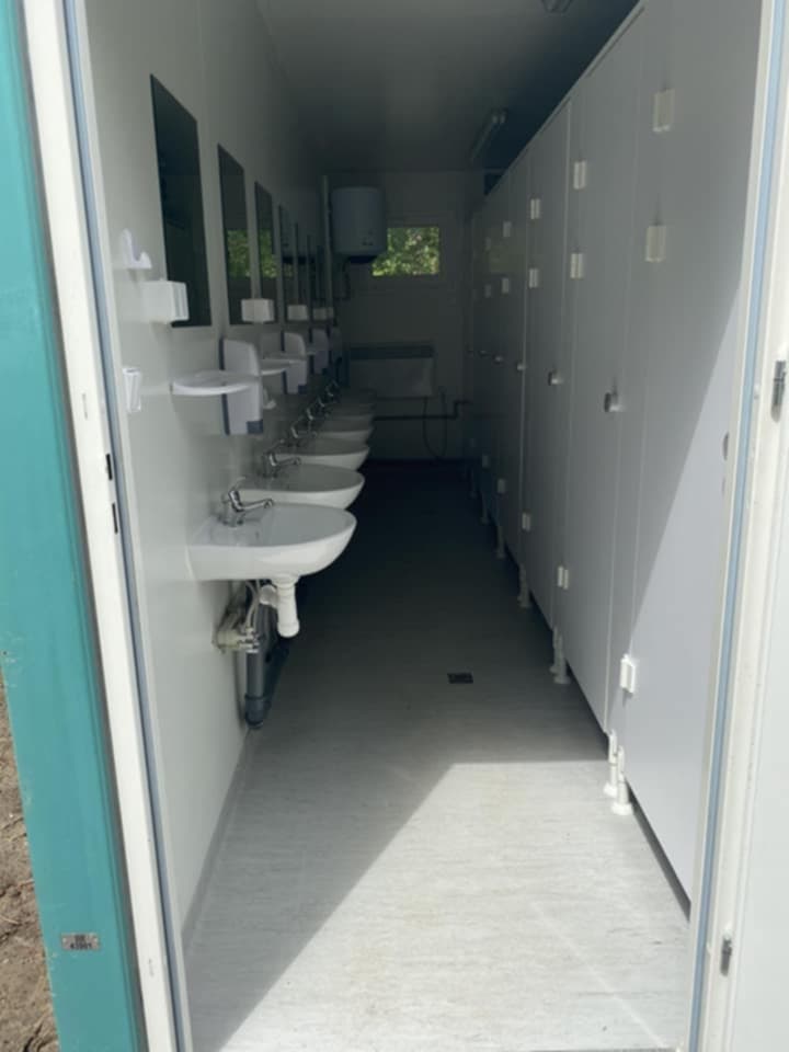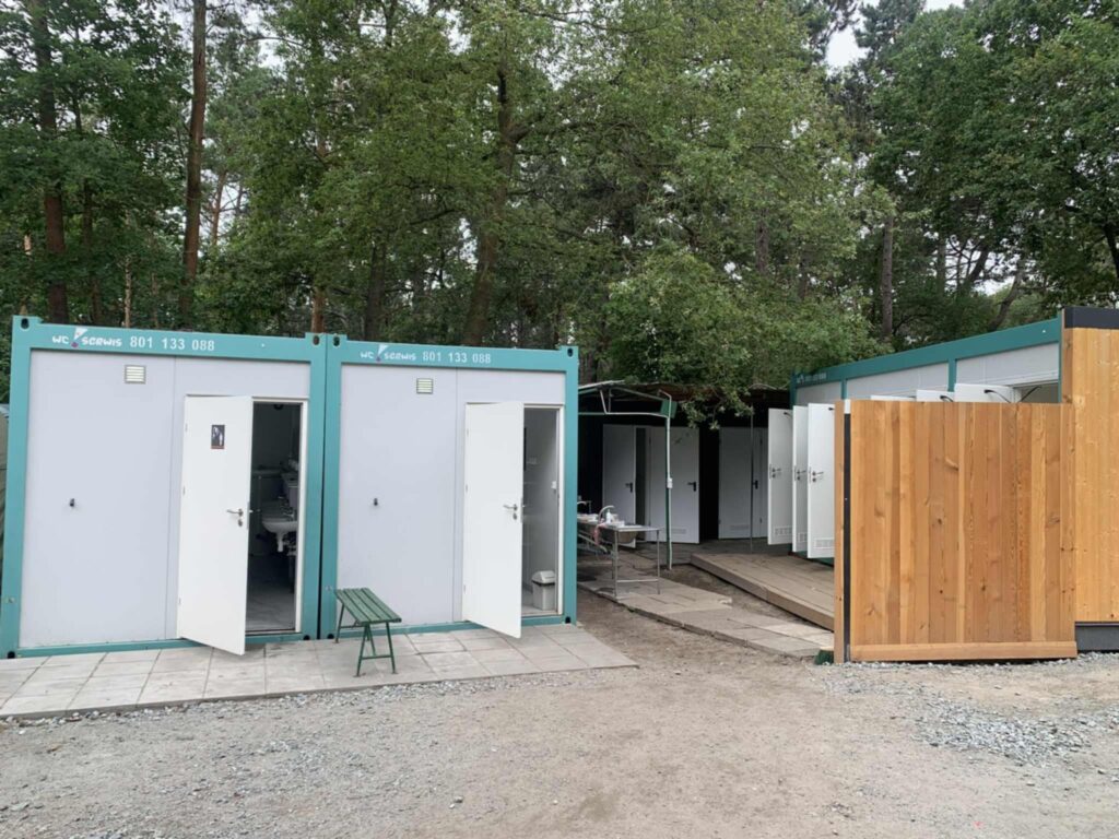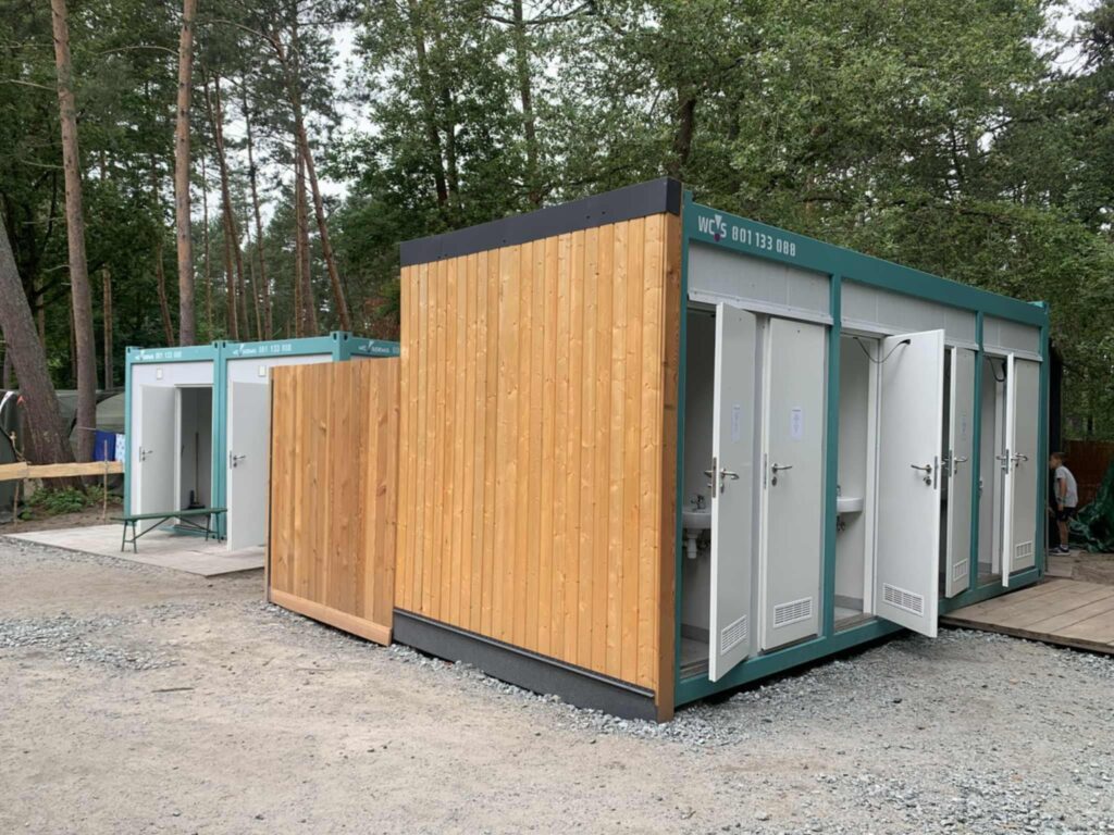 Baza wyposażona jest w stałe węzły higieniczno-sanitarne: